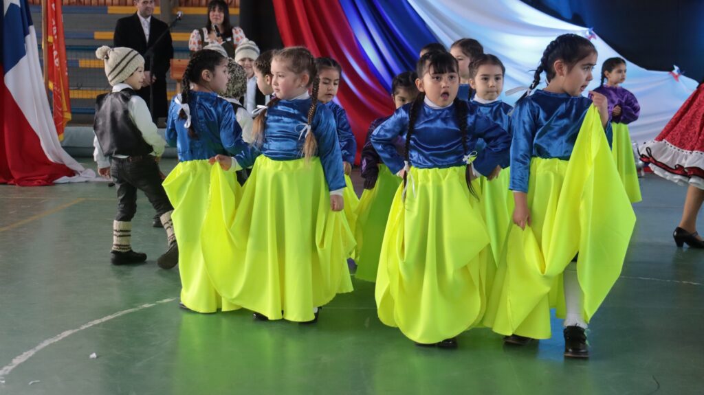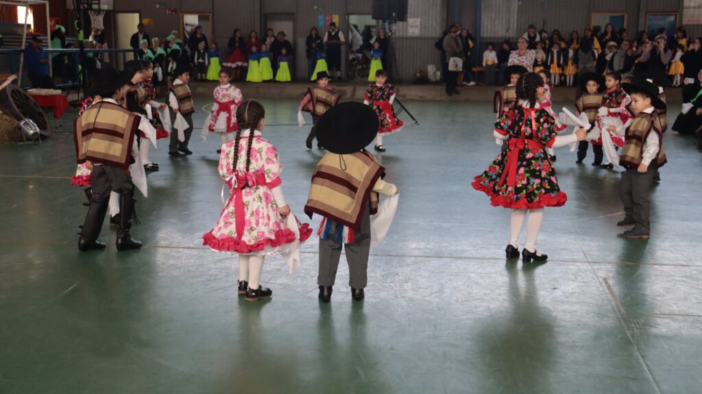Uno de los momentos más emotivos fue la presentación de bailes típicos, donde los párvulos no estuvieron solos, sino que fueron acompañados por sus padres y apoderados, quienes también se sumaron con entusiasmo a las coreografías, fortaleciendo el vínculo entre escuela y familia. Al finalizar la jornada, las educadoras del establecimiento sorprendieron con una hermosa presentación artística, que fue aplaudida por todos los asistentes.