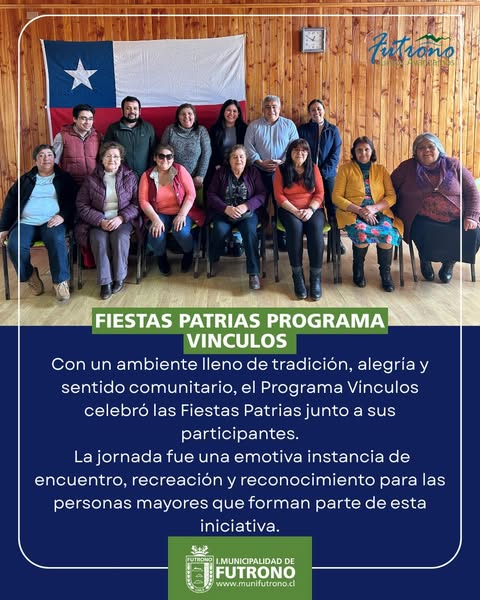 Con un ambiente lleno de tradición, alegría y sentido comunitario, el Programa Vínculos celebró las Fiestas Patrias junto a sus participantes en el Centro Comunitario Los Castaños, en Futrono. La jornada fue una emotiva instancia de encuentro, recreación y reconocimiento para las personas mayores que forman parte de esta iniciativa.