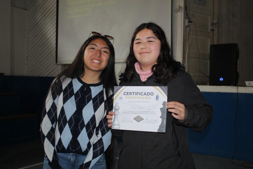 Además, Javiera ofreció una charla magistral abierta a todo público, compartiendo su experiencia como referente del ajedrez chileno, sus participaciones en las Olimpiadas de Ajedrez y su sueño de convertirse en la primera Gran Maestra Femenina del país. El encuentro cerró con una instancia cercana y emotiva, donde asistentes pudieron conversar, aprender y fotografiarse con la campeona.
